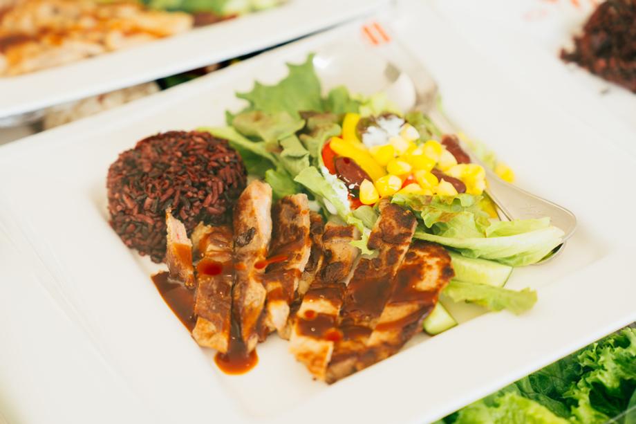 ขั้นตอนแรกสุดที่สำคัญคือ วางแผนการกินด้วยการเดินสำรวจไลน์อาหารทั้งหมดก่อน เพื่อมองหาเมนูที่อยากกินที่สุด และจะได้ประเมินเพื่อจัดหมวดหมู่ด้วยว่า อาหารที่อยากกินอยู่ในหมวดใด ข้าวแป้ง โปรตีน หรือผักต่าง ๆ