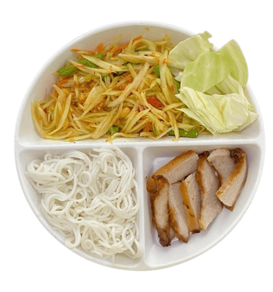 สั่งขอข้าว “น้อยลงหน่อย” เพราะผู้ขายมักตักข้าวให้เต็มจานเป็นปกติ เราจึงต้องสั่งขอข้าวน้อยลงหน่อย แนะนำให้มีข้าวในปริมาณ2-3 ทัพพี (จากเดิมเต็มจาน จะอยู่ที่ 4 ทัพพี) และควรเหลือที่สำหรับกับข้าวกลุ่มผัก และเนื้อสัตว์ (โปรตีน)