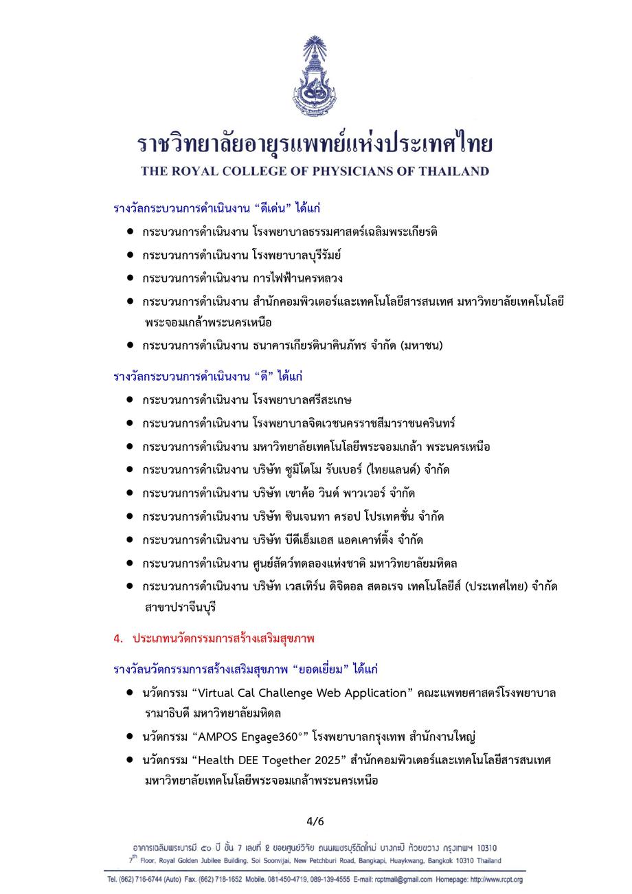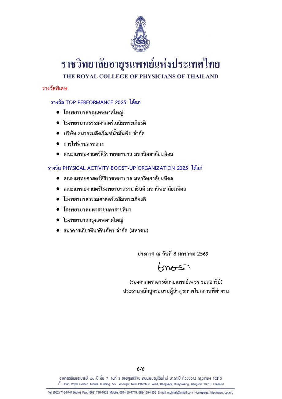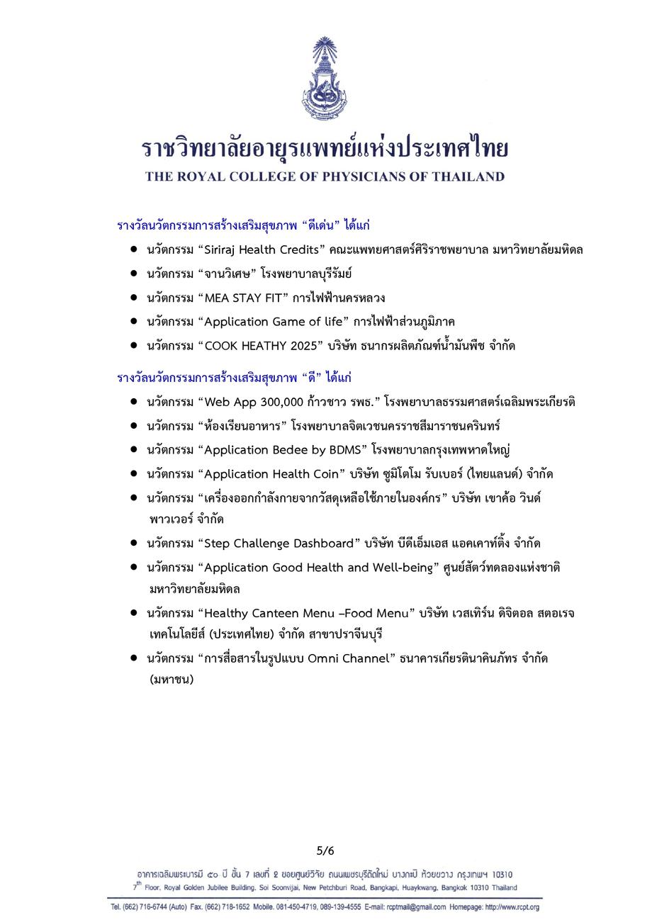 เครือข่ายคนไทยไร้พุง จัดให้มีการส่งผลการดำเนินงานขององค์กรที่ส่งบุคลากรเข้ารับการอบรมหลักสูตรผู้นำสุขภาพในสถานที่ทำงาน โดยพิจารณามอบรางวัล Healthy Organization Award เพื่อเป็นขวัญกำลังใจแก่องค์กร และผู้ปฏิบัติงานสร้างเสริมสุขภาพบุคลากรในองค์กร แบ่งออกเป็นรางวัลประเภทผู้นำองค์กร ทีมผู้นำสุขภาพ กระบวนการดำเนินงาน และนวัตกรรมการสร้างเสริมสุขภาพ และจัดพิธีมอบรางวัลในงาน Healthy Organization Day ซึ่งจัดขึ้นเป็นประจำทุกวันศุกร์สัปดาห์ที่สามของเดือน มกราคม ของทุกปี